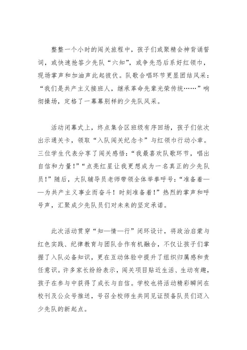 一年级分批入队闯关新闻稿——入队闯关立志向誓言铿锵启新章 07-15 管理相关 523 ——预览已结束,还剩1页未读——开通会员后可免费下载高清完整文档 资源下载此资源下载价格为15米,VIP免费,请先登录 资源下载下载价格15 米VIP免费请先登录 0 0