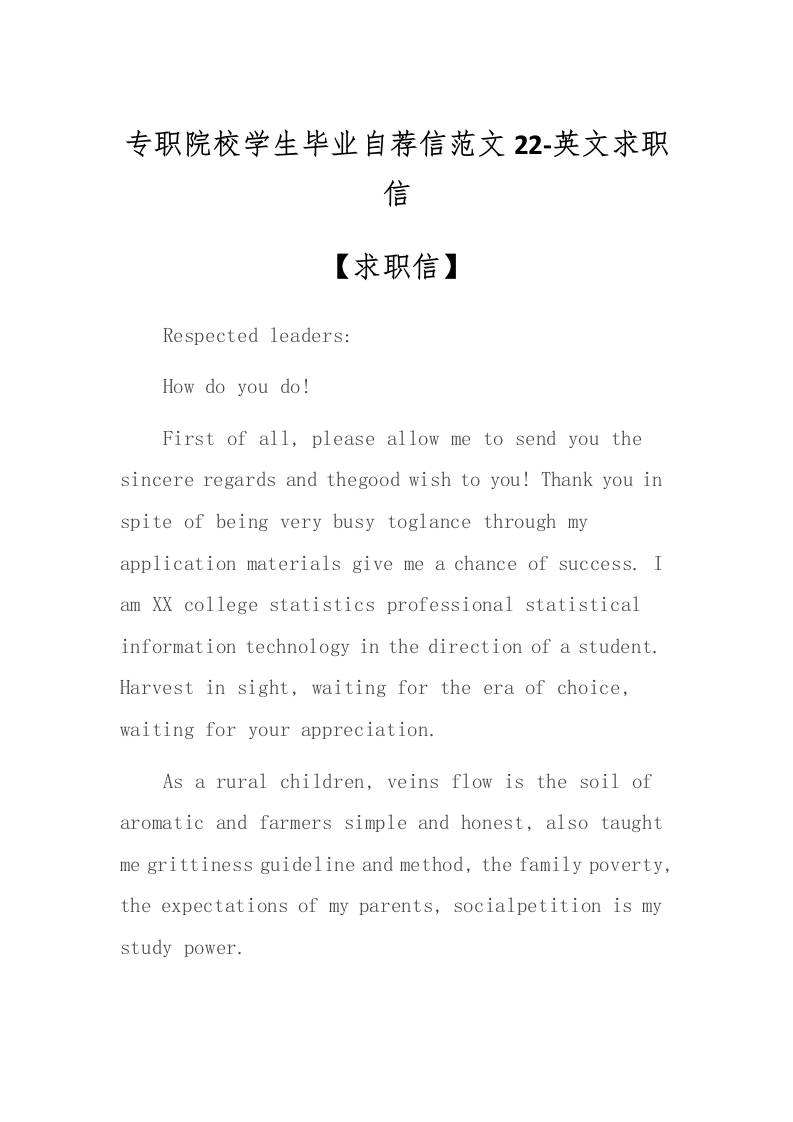 专职院校学生毕业自荐信范文22-英文求职信 07-17 管理相关 1.32k ——预览已结束,还剩3页未读——开通会员后可免费下载高清完整文档 资源下载此资源下载价格为15米,VIP免费,请先登录 资源下载下载价格15 米VIP免费请先登录 0 0