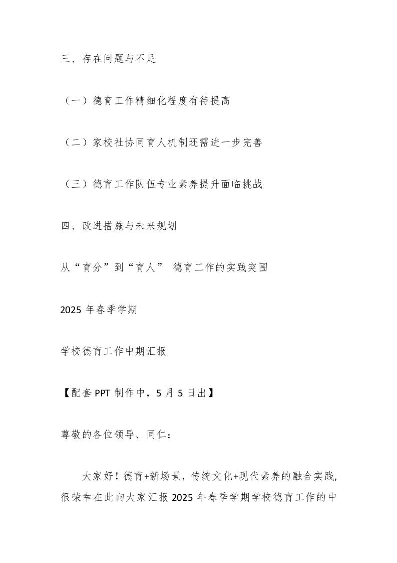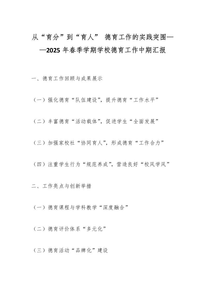 从“育分”到“育人”德育工作的实践突围——2025年春季学期学校德育工作中期汇报 07-19 工作总结 1.5k ——预览已结束,还剩18页未读——开通会员后可免费下载高清完整文档 资源下载此资源下载价格为15米,VIP免费,请先登录 资源下载下载价格15 米VIP免费请先登录 0 0