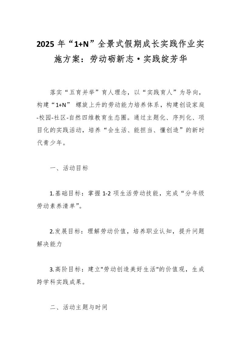 2025年“1N”全景式假期成长实践作业实施方案:劳动砺新志·实践绽芳华 07-22 管理相关 1.12k ——预览已结束,还剩12页未读——开通会员后可免费下载高清完整文档 资源下载此资源下载价格为15米,VIP免费,请先登录 资源下载下载价格15 米VIP免费请先登录 0 0