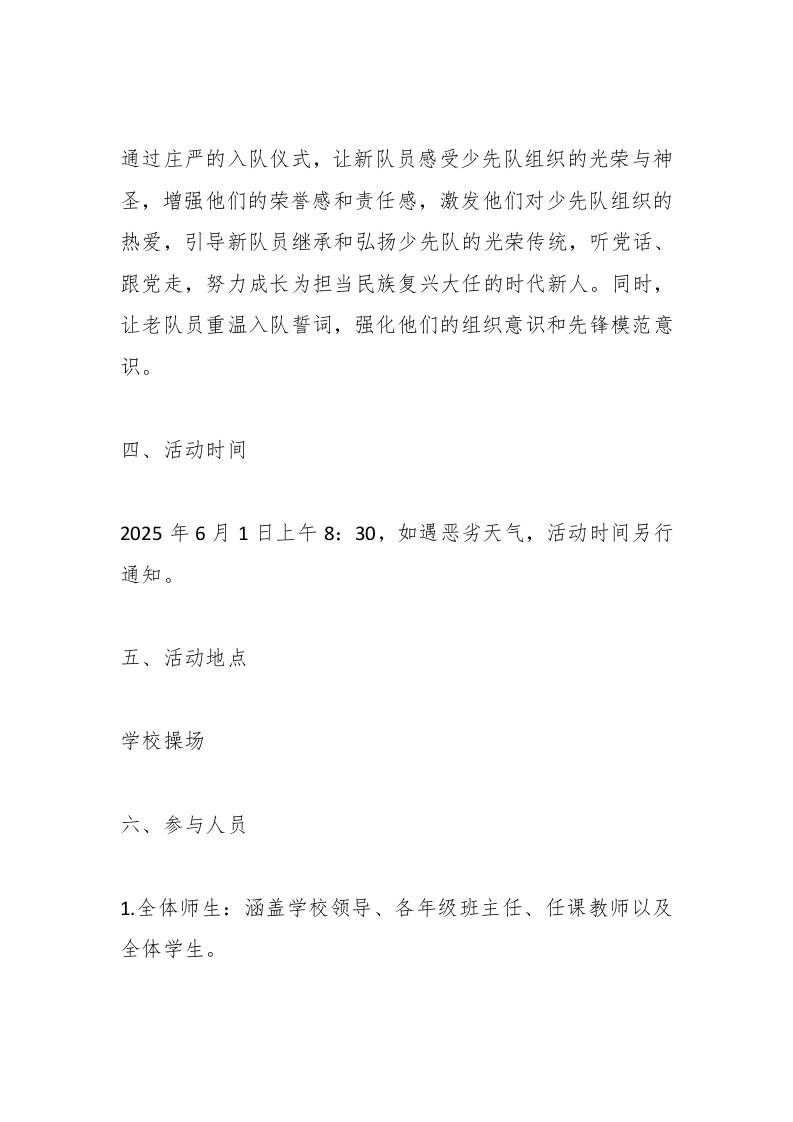 2025年六一新队员入队仪式活动实施方案:红领巾心向党,争做新时代好队员(含活动流程和人员分工表)