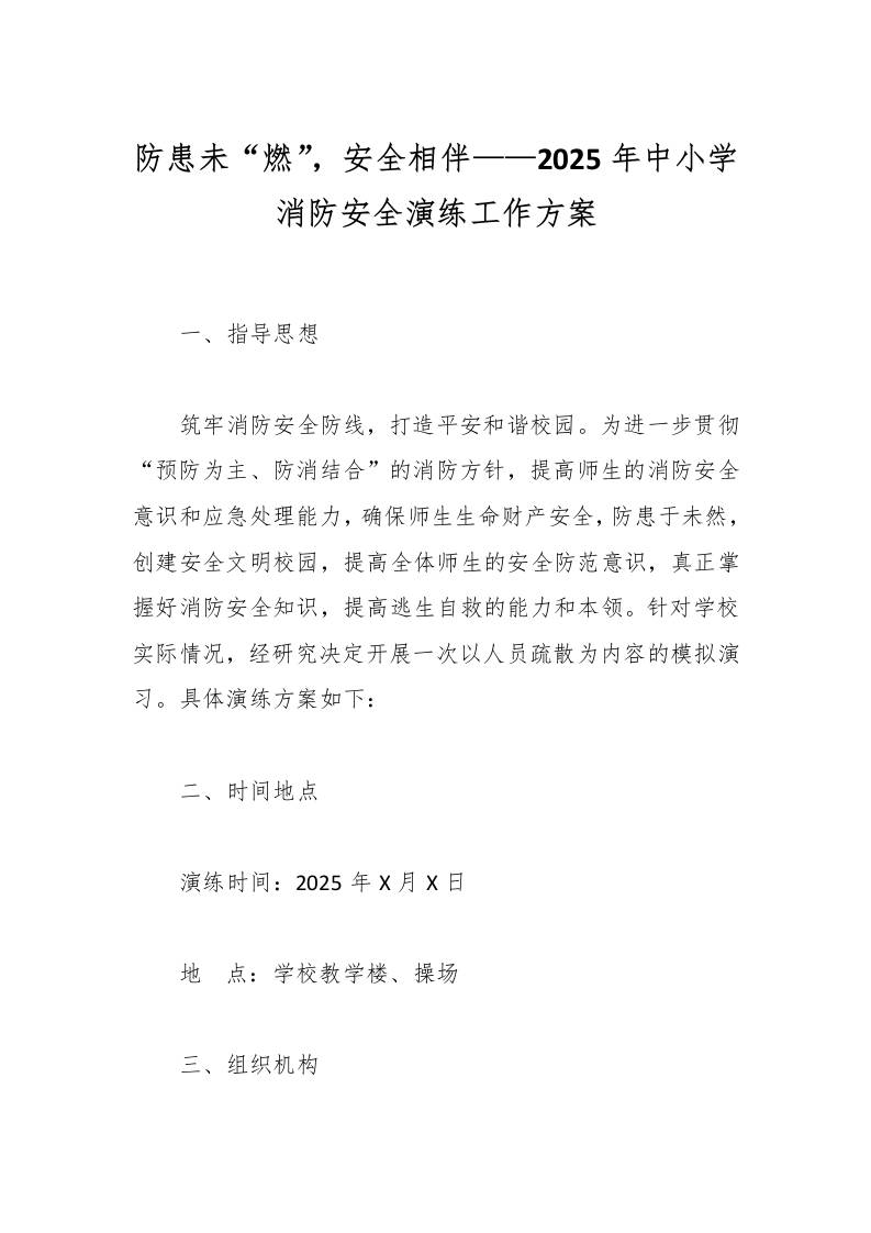 防患未“燃”,安全相伴——2025年中小学消防安全演练工作方案
