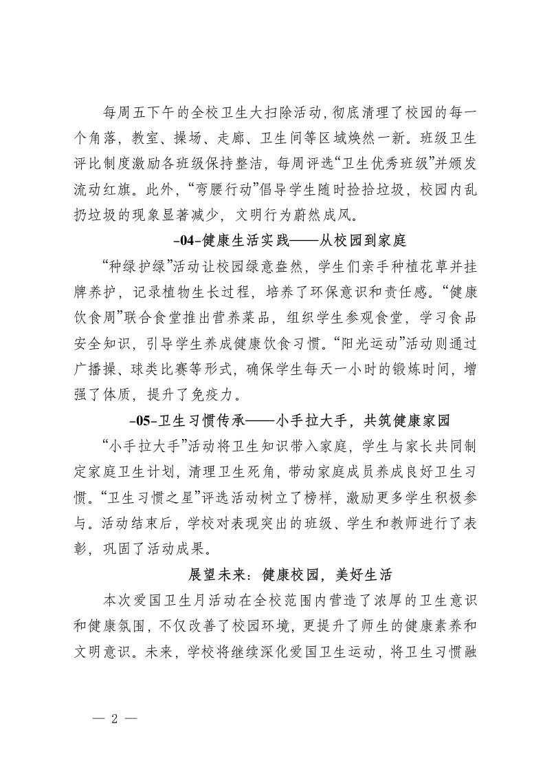 3爱卫新篇章,健康“心”生活——2025年之墨中小学爱国卫生月活动圆满落幕(总结、新闻稿) 07-28 管理相关 1.38k ——预览已结束,还剩1页未读——开通会员后可免费下载高清完整文档 资源下载此资源下载价格为15米,VIP免费,请先登录 资源下载下载价格15 米VIP免费请先登录 0 0