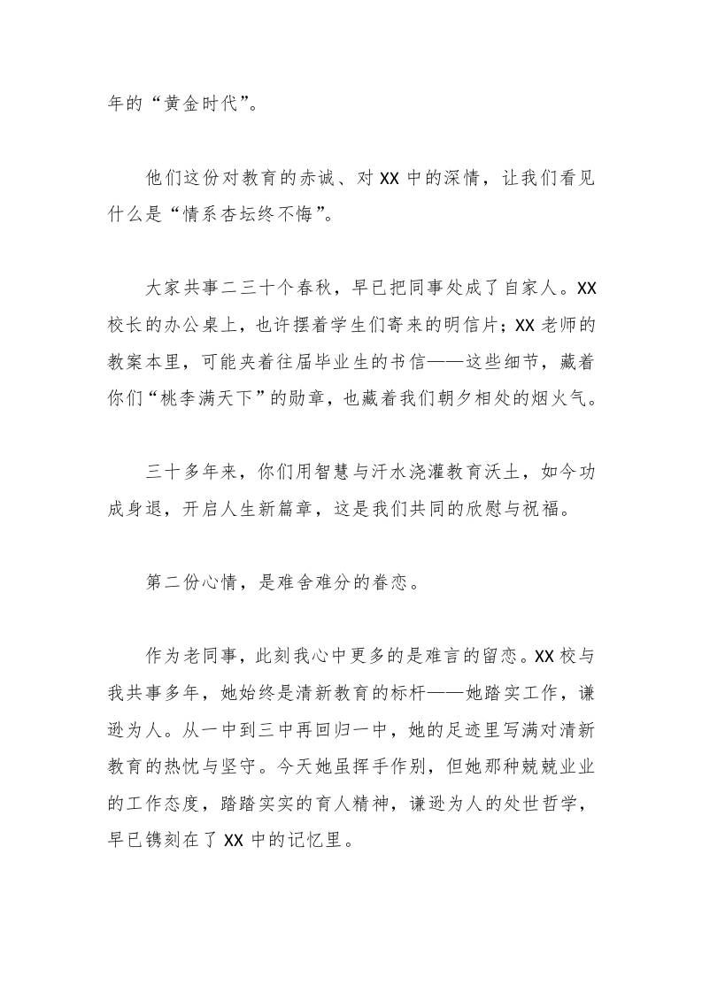 在XX校长、XX老师荣休欢送会上的讲话:三重心情贺同事荣休 08-07 发言稿 1.4k ——预览已结束,还剩2页未读——开通会员后可免费下载高清完整文档 资源下载此资源下载价格为15米,VIP免费,请先登录 资源下载下载价格15 米VIP免费请先登录 0 0