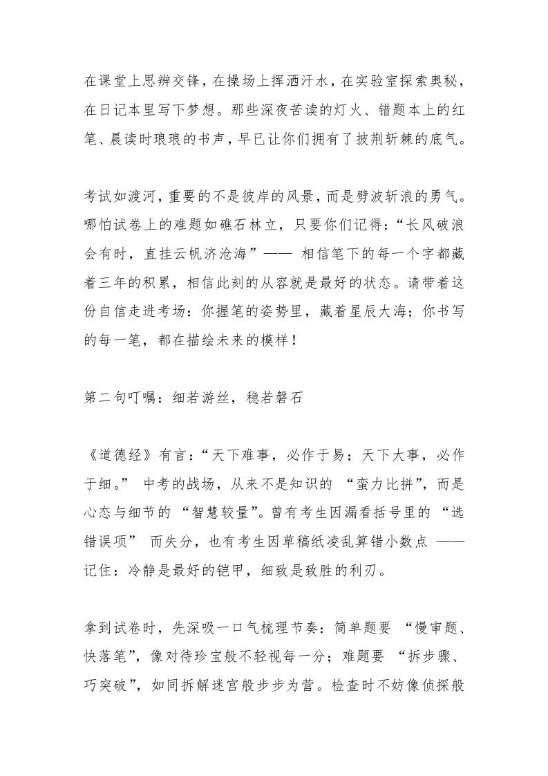 校长在中考出征仪式上讲话:我们会在这里,等你们带着属于自己的精彩,荣耀归来 08-09 发言稿 1.18k ——预览已结束,还剩2页未读——开通会员后可免费下载高清完整文档 资源下载此资源下载价格为15米,VIP免费,请先登录 资源下载下载价格15 米VIP免费请先登录 0 0