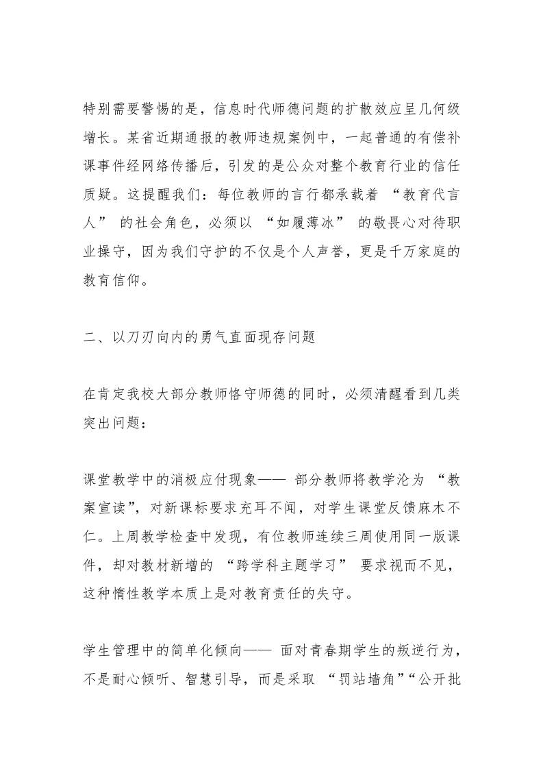 校长在师德师风建设专题会议上讲话:严守六条红线,锻造育人铁军 08-09 发言稿 1.48k ——预览已结束,还剩4页未读——开通会员后可免费下载高清完整文档 资源下载此资源下载价格为15米,VIP免费,请先登录 资源下载下载价格15 米VIP免费请先登录 0 0