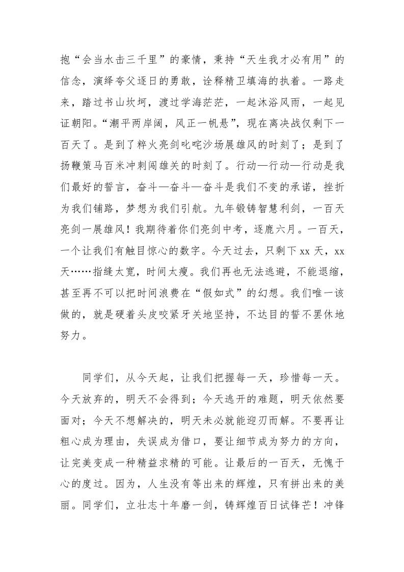中考誓师校长发言不要再让粗心成为理由,失误成为借口,要让细节成为努力的方向,让完美变成一种精益求精的可能 08-10 发言稿 1.35k ——预览已结束,还剩1页未读——开通会员后可免费下载高清完整文档 资源下载此资源下载价格为15米,VIP免费,请先登录 资源下载下载价格15 米VIP免费请先登录 0 0