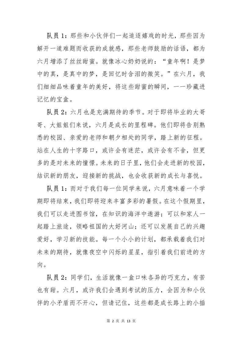 红领巾广播站2025年春季学期第16周播稿 08-16 发言稿 1k ——预览已结束,还剩11页未读——开通会员后可免费下载高清完整文档 资源下载此资源下载价格为15米,VIP免费,请先登录 资源下载下载价格15 米VIP免费请先登录 0 0
