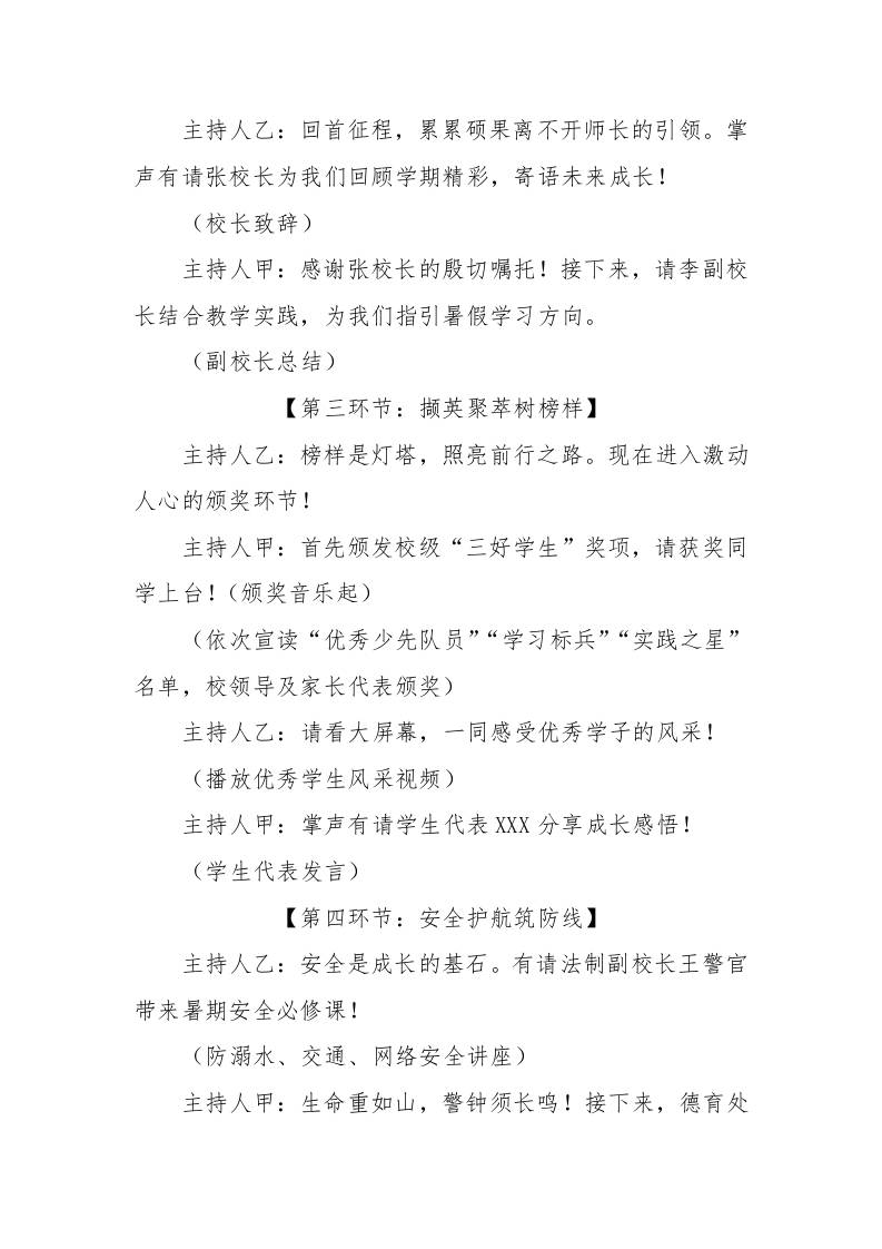 2024-2025学年第二学期散学典礼主持稿-书香盈夏韵,成长向新程 08-23 发言稿 851 ——预览已结束,还剩1页未读——开通会员后可免费下载高清完整文档 资源下载此资源下载价格为15米,VIP免费,请先登录 资源下载下载价格15 米VIP免费请先登录 0 0