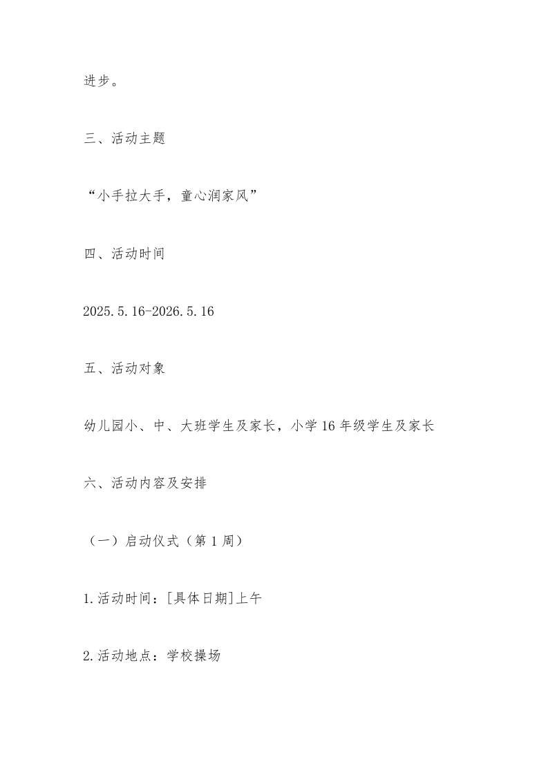 “小手拉大手,童心润家风”家校共育主题活动方案
