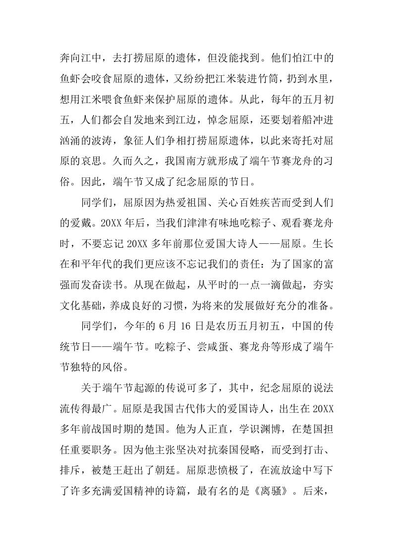 传统佳节端午节国旗下讲话
