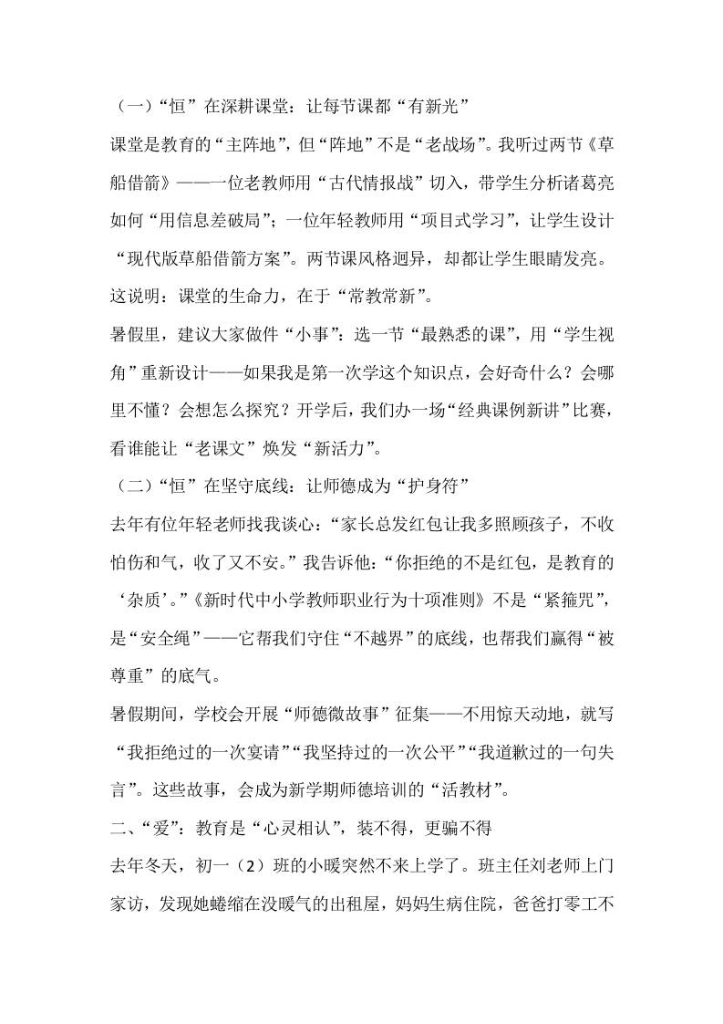 暑假全体教师大会校长讲话稿:三个词,藏着新学期的教育答案 09-02 发言稿 762 ——预览已结束,还剩3页未读——开通会员后可免费下载高清完整文档 资源下载此资源下载价格为15米,VIP免费,请先登录 资源下载下载价格15 米VIP免费请先登录 0 0