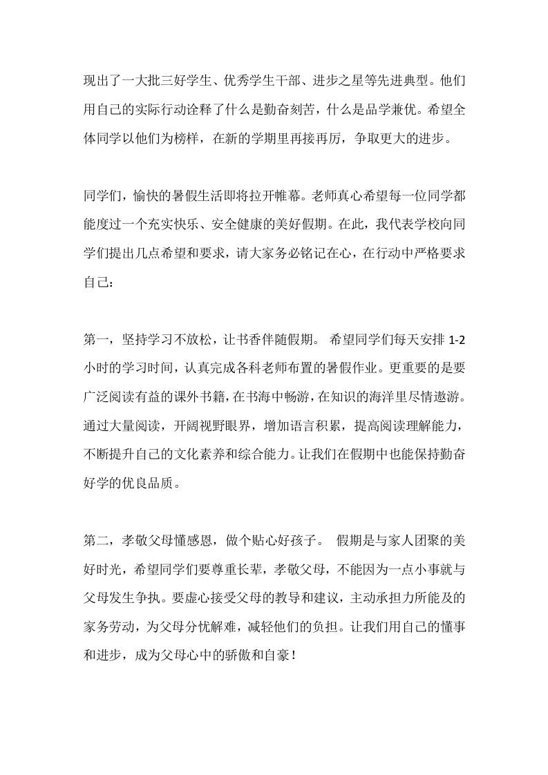 暑假散学典礼(休业式、闭学式),校长讲话:你们的平安,是老师和家长最大的牵挂 09-02 发言稿 1.02k ——预览已结束,还剩2页未读——开通会员后可免费下载高清完整文档 资源下载此资源下载价格为15米,VIP免费,请先登录 资源下载下载价格15 米VIP免费请先登录 0 0