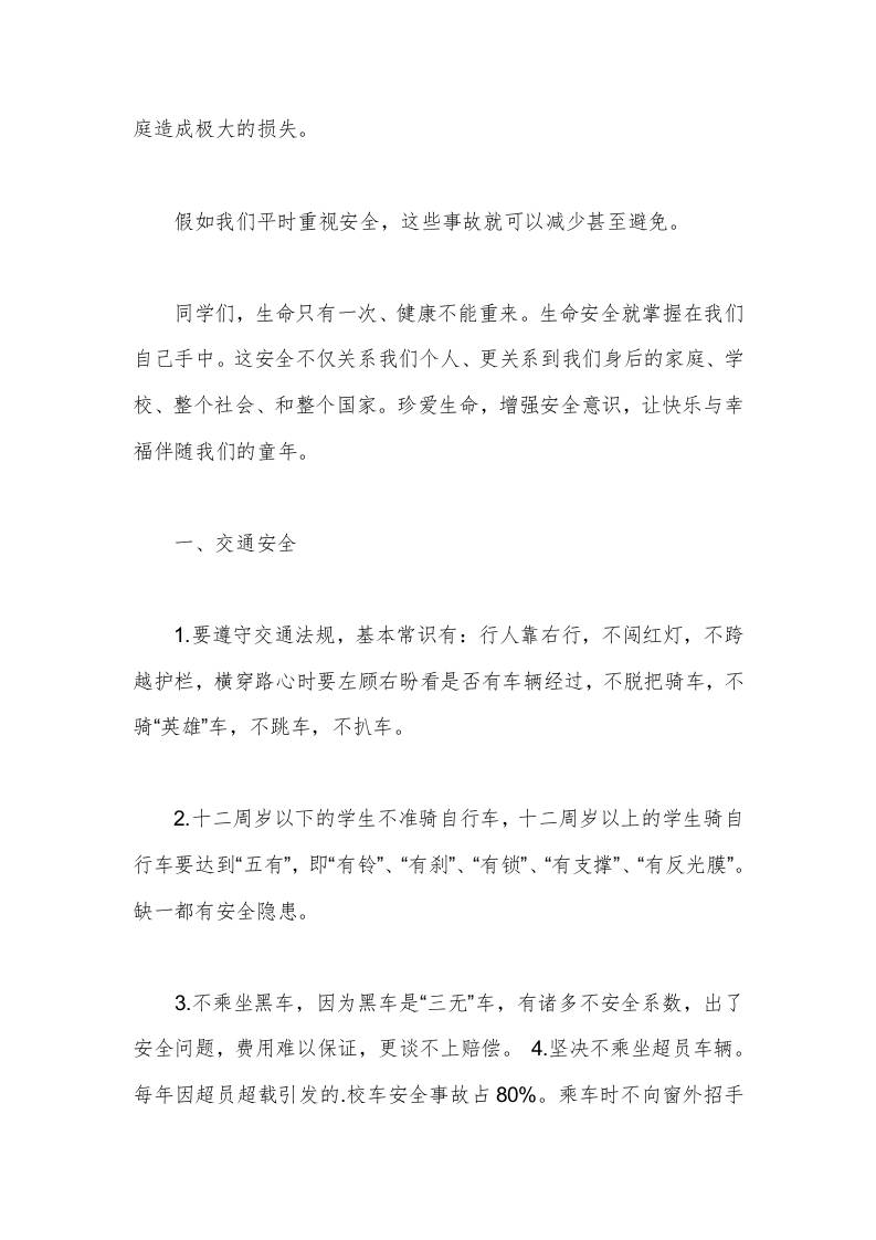 开学纪律安全教育国旗下校长讲话稿