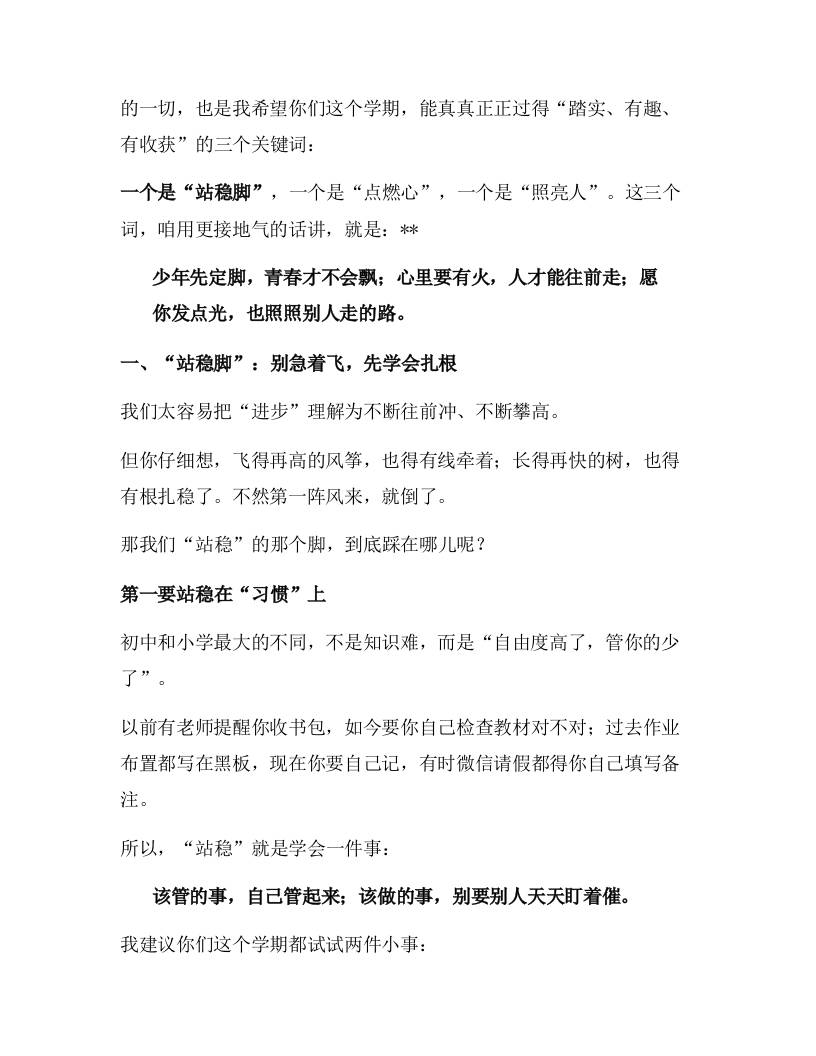 校长在2025年秋季开学典礼上的讲话:新学期,让成长有“根”,有“火”,也有“光”! 09-05 发言稿 1.33k ——预览已结束,还剩4页未读——开通会员后可免费下载高清完整文档 资源下载此资源下载价格为15米,VIP免费,请先登录 资源下载下载价格15 米VIP免费请先登录 0 0