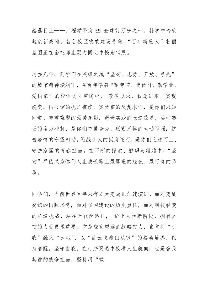 在2025年毕业典礼暨学位授予仪式上的讲话:坚韧