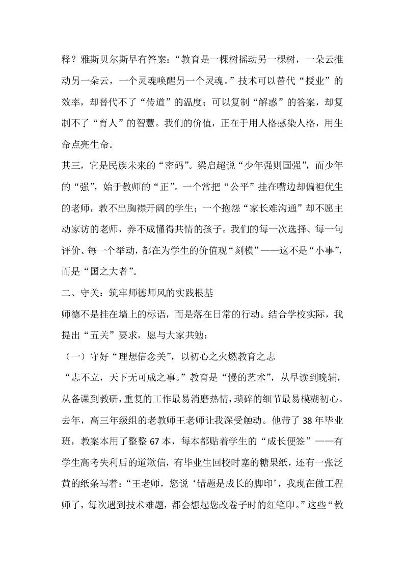 校长在期末师德师风会上讲话:守正立心铸师魂,五关同筑育新章