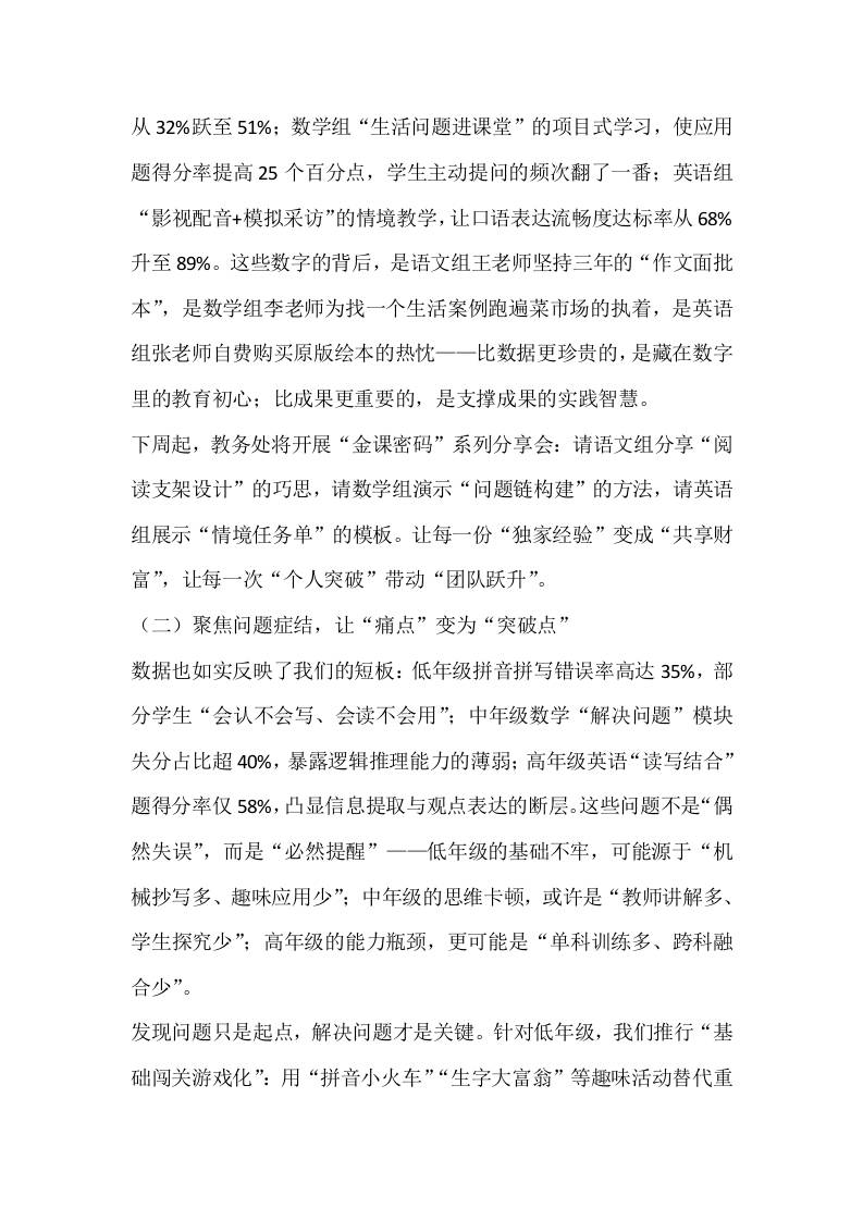 期末教学质量分析会校长总结发言:以数据为镜明方向,以实干为桨启新程,共谱学校高质量发展新篇章
