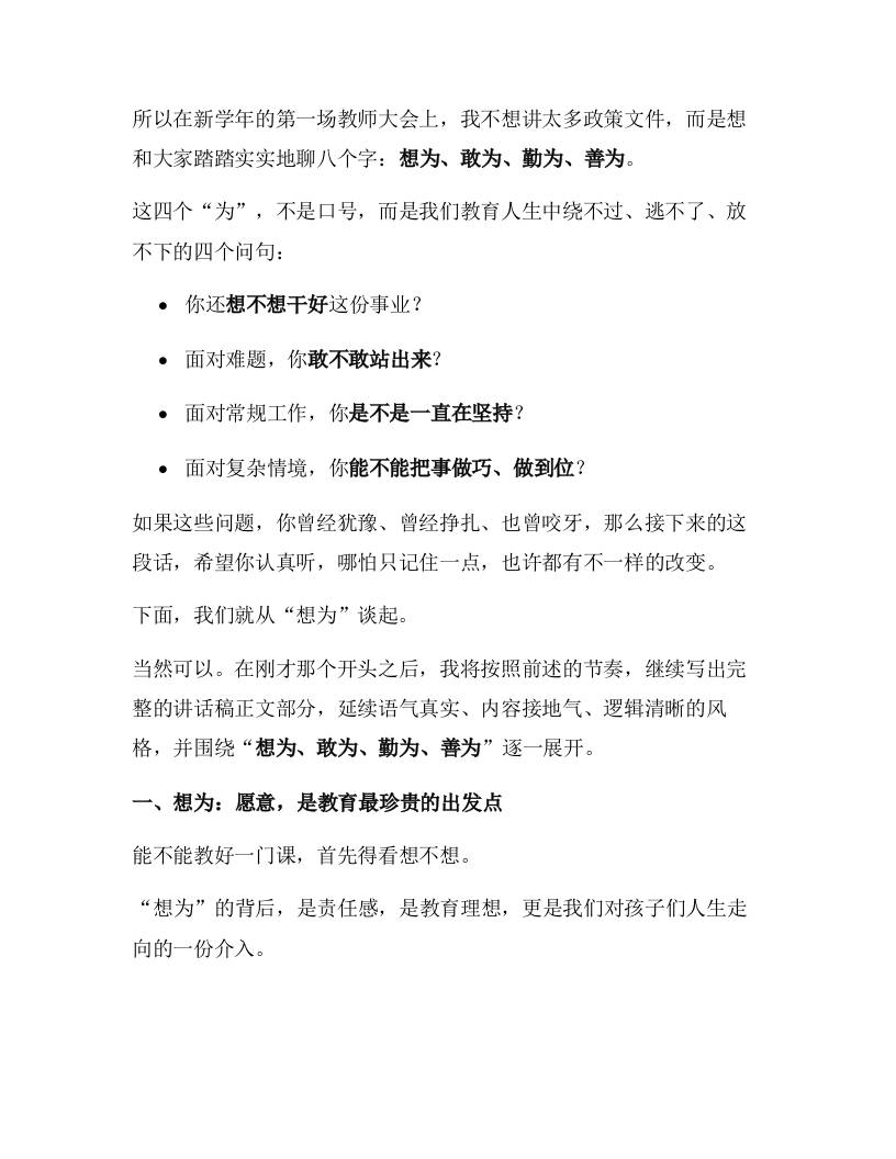 2025年秋季开学第一次全体教师大会上,校长讲话:以心立教,以行致远——做想为、敢为、勤为、善为的新时代教师! 09-18 发言稿 611 ——预览已结束,还剩6页未读——开通会员后可免费下载高清完整文档 资源下载此资源下载价格为15米,VIP免费,请先登录 资源下载下载价格15 米VIP免费请先登录 0 0
