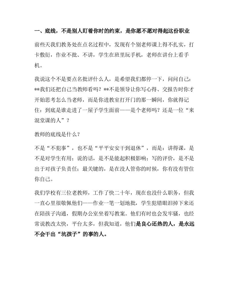 中小学师德师风专题会议,校长讲话:不越线、不敷衍、不辜负——做学生眼中放心、家长心里踏实的老师! 09-20 发言稿 542 ——预览已结束,还剩3页未读——开通会员后可免费下载高清完整文档 资源下载此资源下载价格为15米,VIP免费,请先登录 资源下载下载价格15 米VIP免费请先登录 0 0